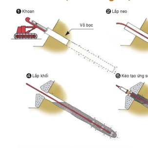 Đầu neo (anchor head): bộ phận ở mặt công trình (thường là tường chắn hoặc dầm neo) để siết, kiểm tra và bảo dưỡng lực kéo.